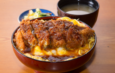 白飯上鋪上高麗菜和軟綿的煎蛋,再加上醬汁炸豬排,就成為知名的會津柳津醬汁炸豬排丼!